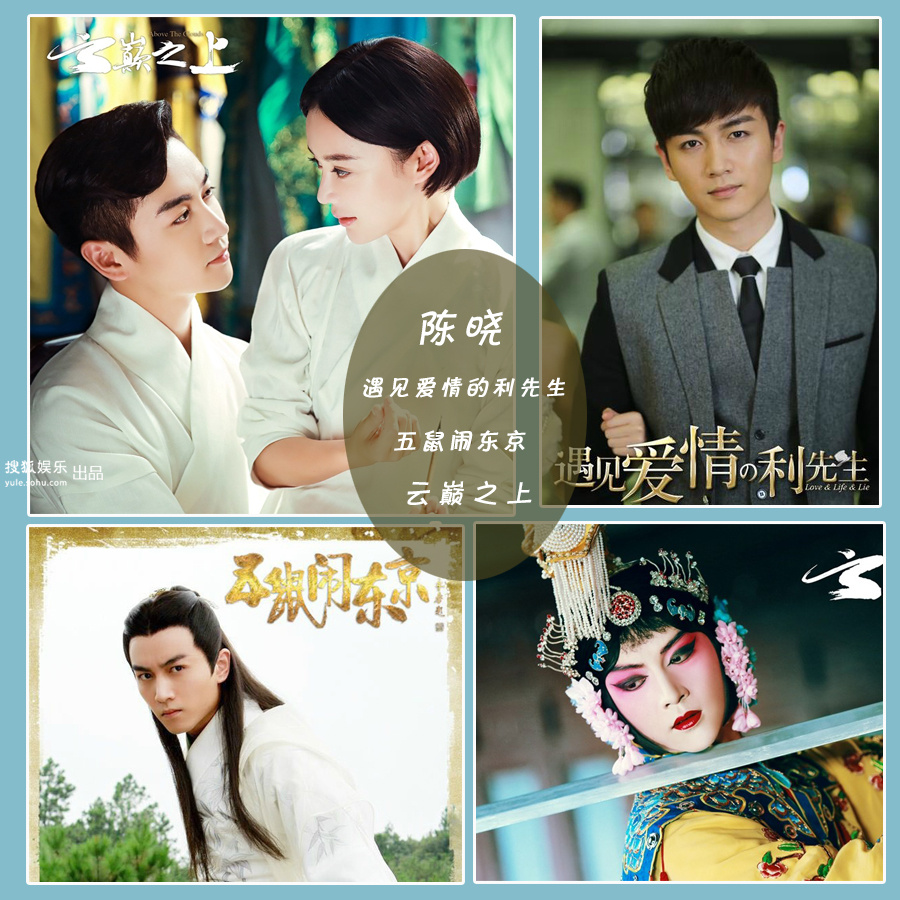 2015年享受浪漫爱情滋润的陈晓,2016年将会兼顾事业及家庭两部分。在刚刚开播的《五鼠闹东京》里,陈晓饰演了气宇不凡,重名轻利却有点恃才傲物的“锦毛鼠”白玉堂,与严屹宽饰演的展昭有大量对手戏。《遇见爱情的利先生》是陈晓首部时装剧,剧中他饰演的利曜南是个腹黑深沉的商界奇才,跟生活中的自己非常不同,而与周冬雨的二度合作也更显默契。《云巅之上》则是讲述一个发生在宫娱乐的影视公司中的演技升级故事,除了爱情、生存还有治愈,是《宫》的时装版,陈晓扮演傲娇毒舌大明星唐斐,和袁姗姗饰演了一对从斗气冤家发展成人人羡慕的爱侣。