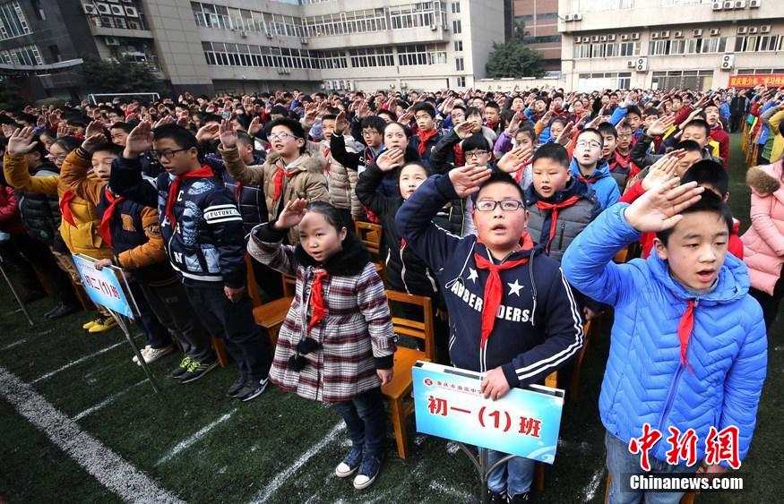 重庆一中学开学典礼传递巨幅党旗