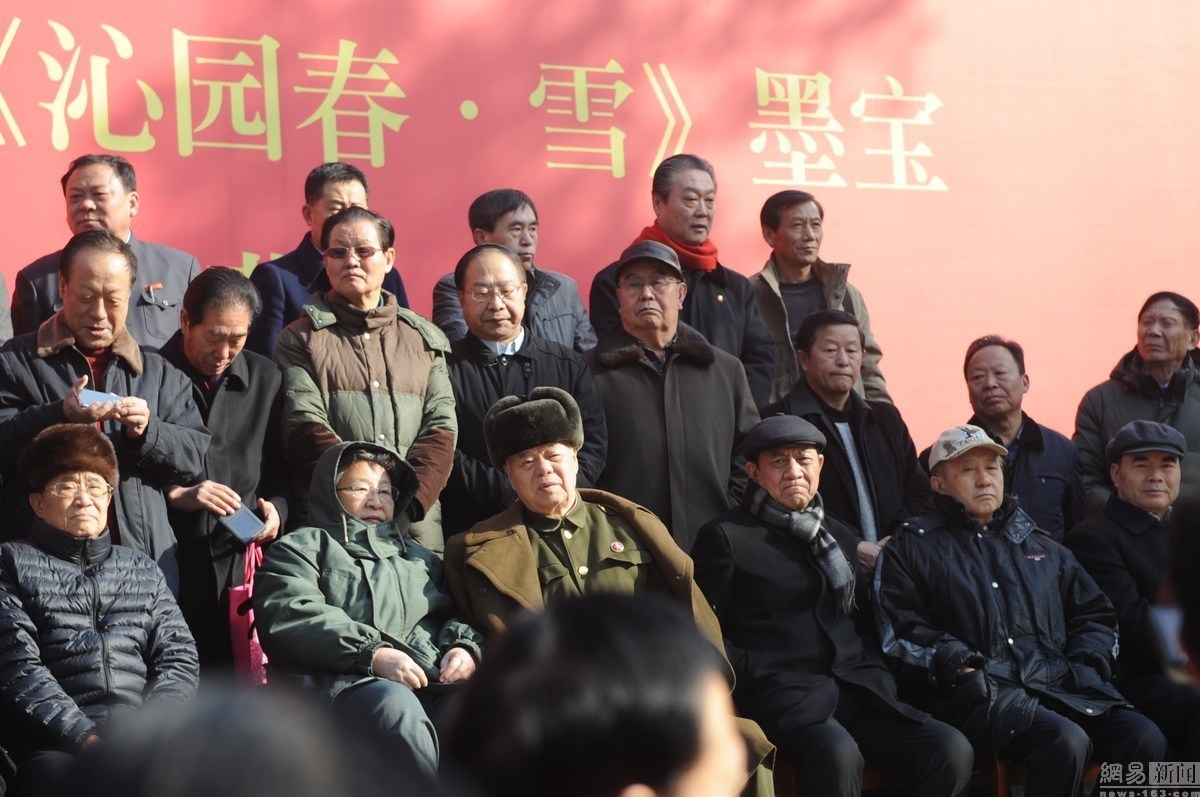 2016年2月25日,山西省太原市,纪念毛泽东《沁园春·雪》创作80周年书法作品展在文庙(山西省民俗博物馆)举行。毛泽东女儿李讷、女婿王景清、侄孙毛世霖携带自己书法作品与市民见面,引爆活动现场?;疃诩洌胁糠质忻袢惹楦哒?,口喊“毛泽东万岁”。