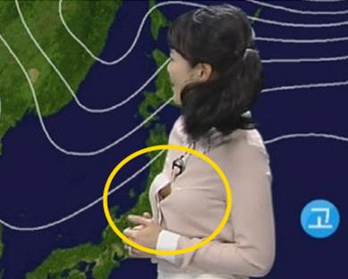 韩国女主播播报时上衣撑开