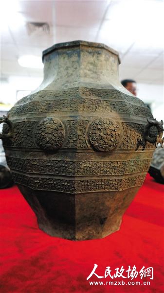 出土的铜缶。