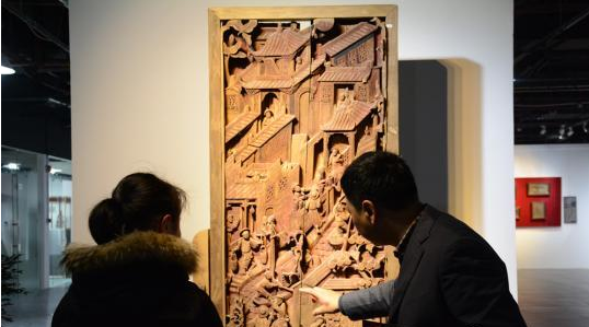 精美的木雕版吸引观众细致品评