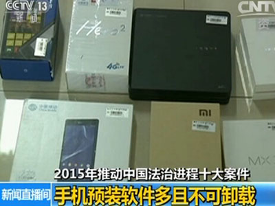 推动中国法治进程十大案件:公益诉讼破手机预装乱象