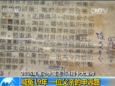 推动中国法治进程十大案件:陈夏影父亲为子伸冤19年