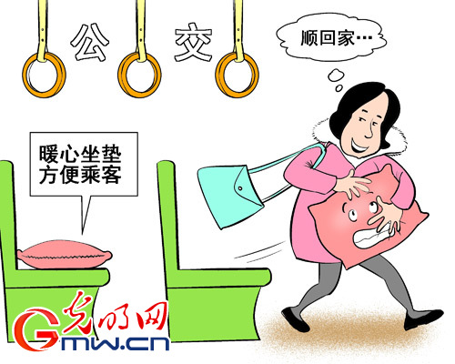 怕乘客坐车凉,青岛一些公交车司机自发装上了暖心坐垫,然而有乘客刚坐一站就顺走座椅上的坐垫。两个月内,6辆公交车一共投放了198个坐垫,到现在为止,已经丢了30多个。(据12月30日 光明网)