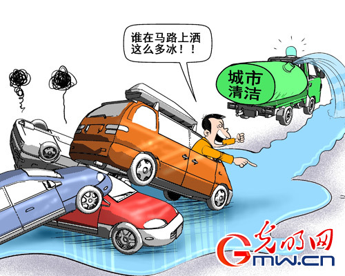 1月14日上午,阜阳出现了“怪事”:从当日清晨6点到上午8点半之间,城区共接到了42起交通事故,在这些交通事故中,报警人都用了类似的词语——地滑、结冰。原来,当日阜阳气温较低,最低温度-5℃。而当日凌晨4点多,洒水车冒着严寒“辛苦”工作,洒水清洁路面,导致阜阳城区多条道路结冰,继而影响交通。对此,当地环卫部门已向广大市民致歉。(1月17日安徽网