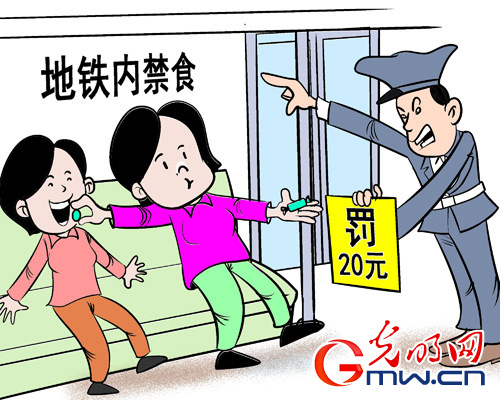 据中国之声《新闻纵横》报道,说话的人是南京市民王女士,她吃的这一颗糖,还没来得及咂摸味道,就换来了一张20元的罚单。因为她吃糖的这个地方,是南京地铁的车厢里。王女士觉得自己很冤枉,但南京地铁工作人员表示,《南京轨道交通条例》第三十八条第六项明文规定,列车车厢内禁止饮食。而条例第五十八条规定,违反本条例第三十八条第六项的,可处以二十元以上一百元以下???。也就是说,地铁执法人员对王女士还是低限处罚了。(据1月20日 央广网)