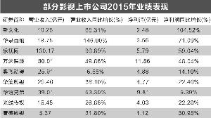 受益于国内影视产业的持续发展,A股影视类上市公司2015年年报“有看头”:截至2月28日晚间,华谊兄弟、光线传媒、华录百纳、新文化、万达院线、乐视网、奥飞动漫等影视制作、院线公司相继发布2015年年度业绩快报或年度报告,均呈现业绩增长态势。