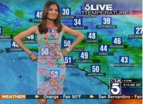 据外媒报道,日前,美国洛杉矶KTLA 5电视台气象女主播利贝泰 陈在播报时,穿了一袭白色底珊瑚图案的洋装。结果衣服融入气象图,把她变成了“隐形人”,好在机智的同事赶紧脱下西装外套救场?! ?/p>