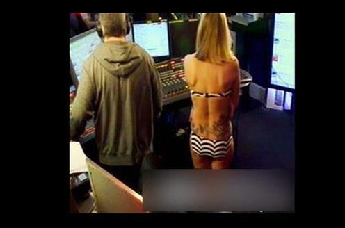 美女主播菲妮·科顿穿着比基尼主持节目。