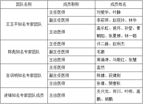 二、 知名专家团队出诊安排团队门诊