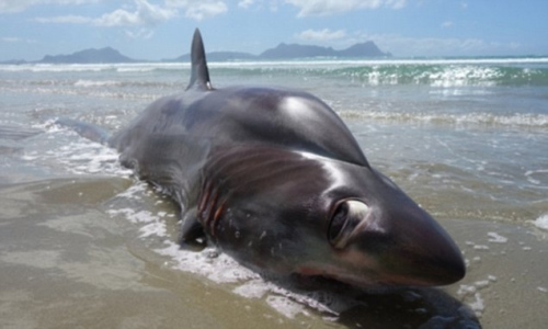 根据新西兰保育局鲨鱼专家达菲透露,该条怪鱼是一种名为大眼长尾鲨(bigeye thresher shark)的鲨鱼,它们通常在深海觅食。