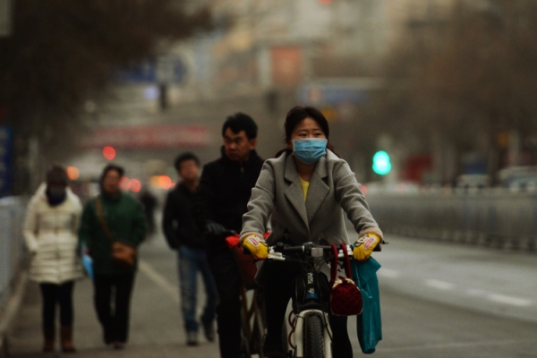 3月4日,兰州市民在沙尘天气中出行。