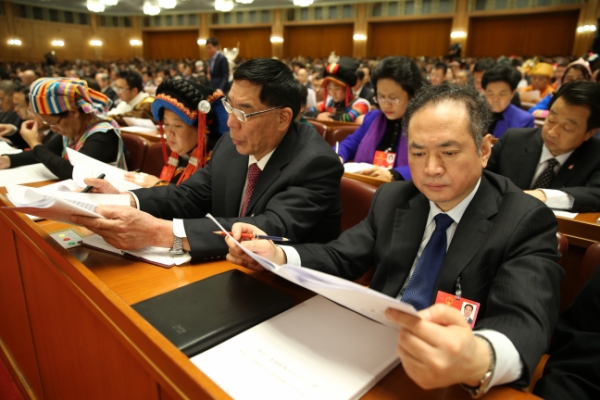 3月5日,第十二届全国人民代表大会第四次会议在北京人民大会堂开幕。这是代表们在认真听会。新华社记者 陈建力 摄