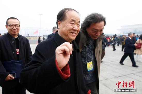 3月3日,全国政协十二届四次会议在北京人民大会堂开幕。莫言委员步入会场。中新社记者 富田 摄
