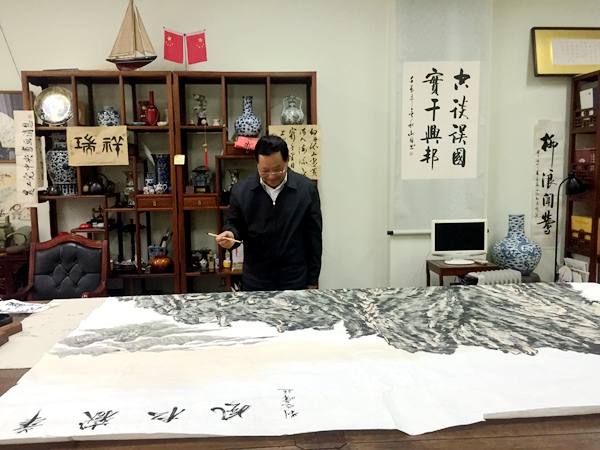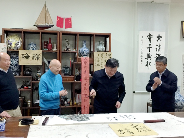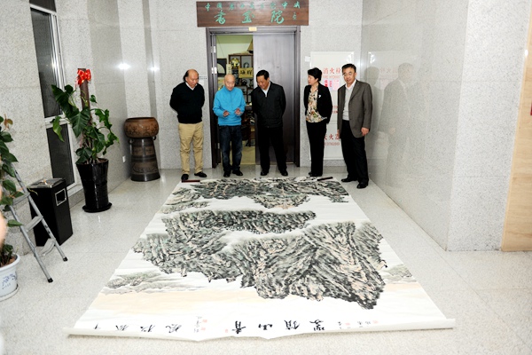 刘晓峰与画家在一起欣赏画作