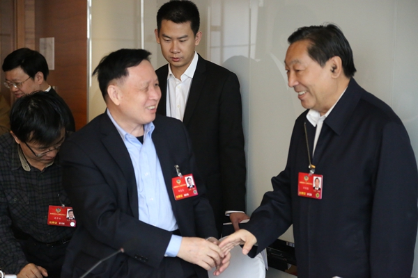 何星亮委员起身向大家鞠躬问好。何星亮会后告诉记者:“我是今年加入民革界别,首次参加小组讨论,心情非常激动,有了民革这个平台的支持,可以更好地履行政协委员职责?!?记者 靳祖保)