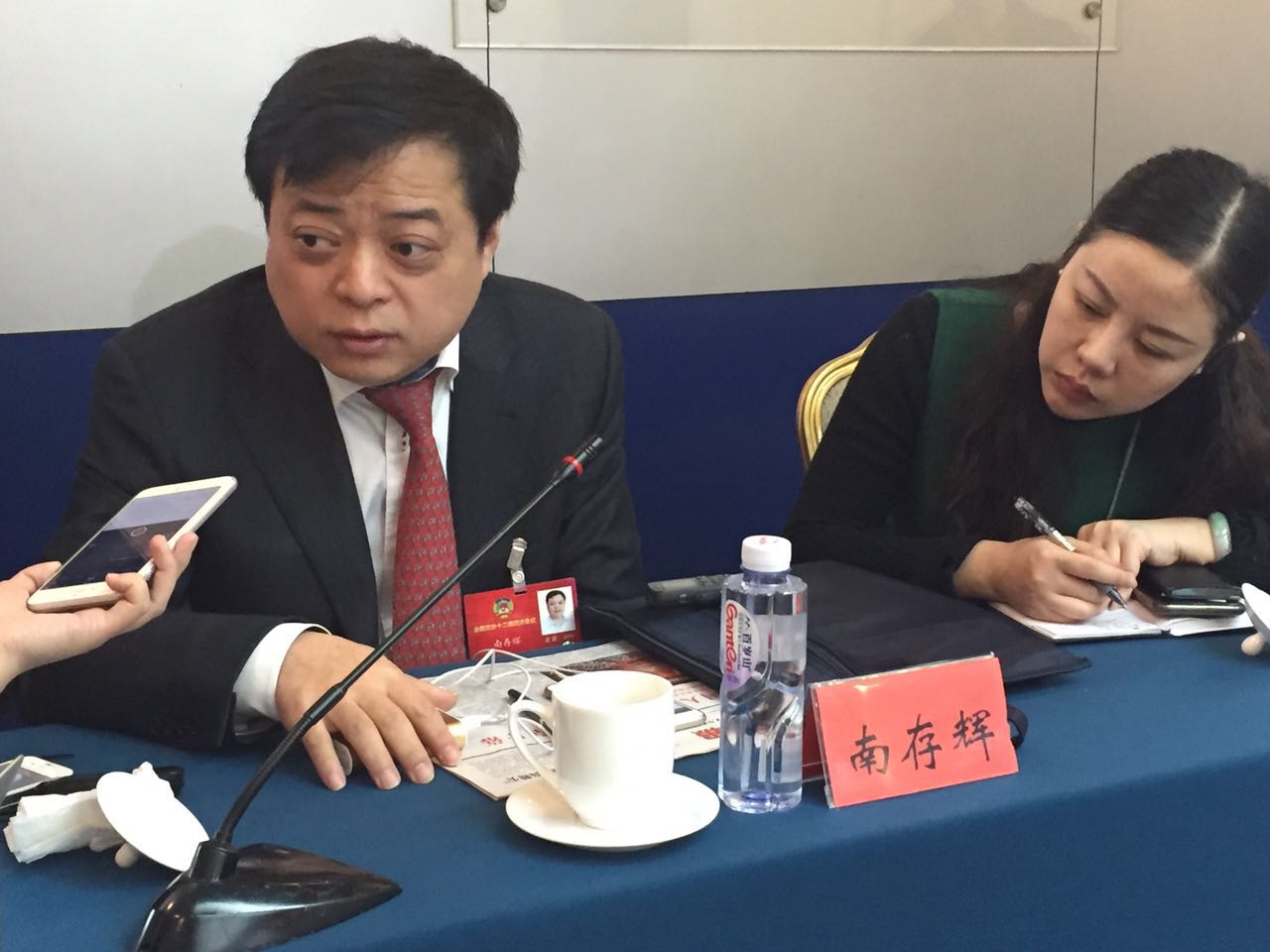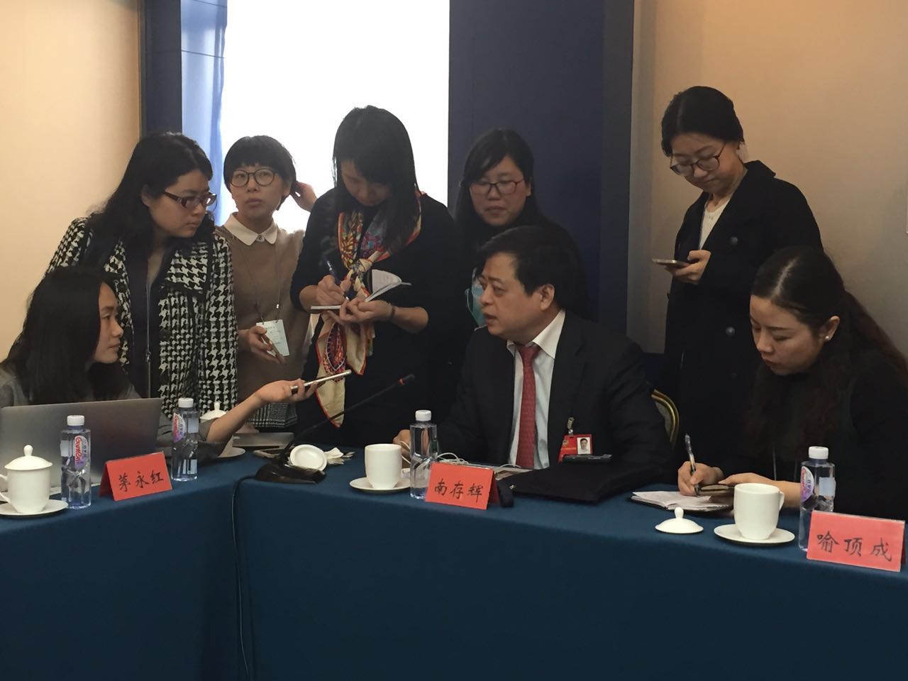 南存辉委员被女记者包围。人民政协网记者 南苏 摄