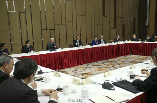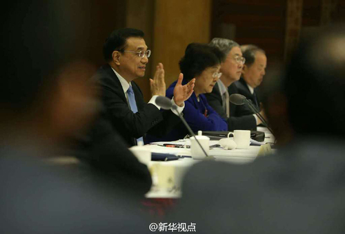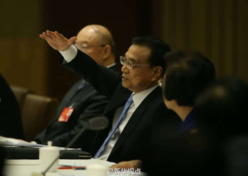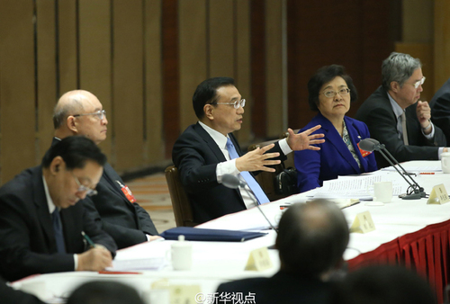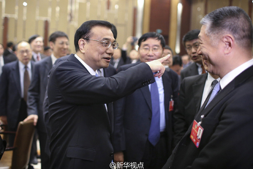 李克强3月4日看望出席全国政协十二届四次会议的经济、农业界委员并参加讨论。