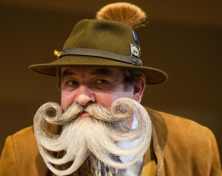 当地时间3月5日,世界胡须锦标赛在德国荀恩堡举行,选手们展示自己的胡须造型。