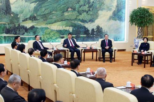 2015年2月11日,习近平在人民大会堂同党外人士欢聚一堂,共迎新春。致公党中央主席万钢在代表大家致辞时,就制定“十三五”规划等提出了意见和建议。