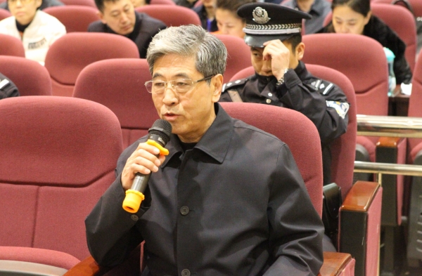 3月7日,杨成林(前)在回答审判长的问题。