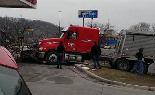 旁边路人听到巨大的撞击声后,转头一看,发现竟然是一只狗狗在开车。眼见卡车快要撞上加油站的煤气桶,有好心人立刻跳上驾驶座紧急煞车,避免了更大灾难,幸好最终无人伤亡。