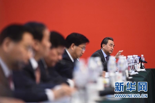 3月7日,十二届全国人大四次会议浙江代表团举行全体会议,外交部部长王毅到会听取建议。新华社记者 金良快 摄