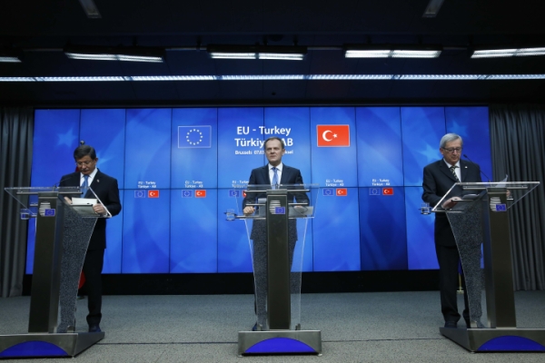 欧盟领导人与土耳其总理达武特奥卢8日在布鲁塞尔举行峰会后,宣布双方就共同解决难民危机达成6项基本原则,并将在3月17日欧盟峰会前就具体协议细节达成一致。欧盟将于3月17至18日举行的峰会上继续对此进行讨论,以期协议获得正式通过。