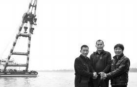 12月10日,长沙渔政码头,史智勤中和陈家两兄弟握手。 图/记者谢长贵