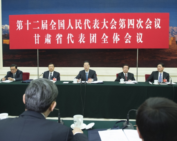 3月8日,中共中央政治局常委、国务院副总理张高丽参加十二届全国人大四次会议甘肃代表团的审议。新华社记者王晔摄