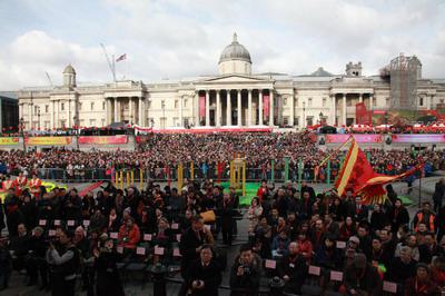 歌舞迎春到,金猴献瑞来。2月14日,英国伦敦市中心特拉法加广场举行了中国春节庆典活动,吸引了近70万英国民众和各国游客,成为伦敦多元文化的一道亮丽风景,给大家带来家庭的团聚、节日的欢乐,共同感受中西方文化的和谐交融。