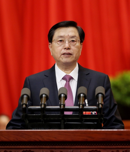 3月9日,十二届全国人大四次会议在北京人民大会堂举行第二次全体会议。全国人大常委会委员长张德江作全国人民代表大会常务委员会工作报告。新华社记者 姚大伟 摄