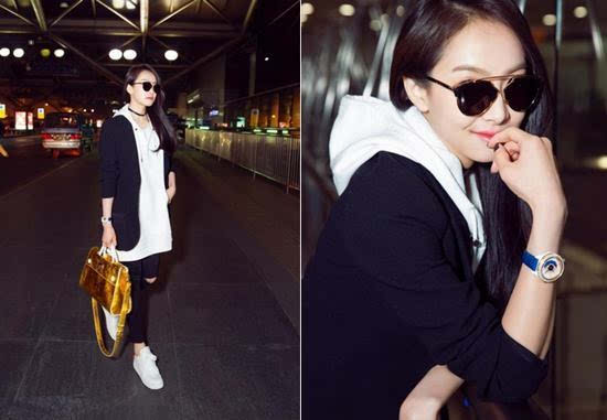 宋茜的巴黎机场LOOK虽然诚意满满,但整身造型搭在一起的效果实在有些对不起观众。刨去那件剪裁失败的黑色外套,不知到底是卫衣、裙子还是连帽衫的内搭,以及那只闪着金光且“壕”无人性的DIOREVER,墨镜、腕表等配饰的选择还是很美好的。