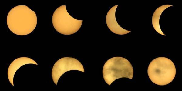 据专家介绍,日食永远发生在农历的初一,也就是朔日,这是因太阳轨道(黄道)与月球轨道(白道)成59的交角,日食发生时,日月两者一定在“黄白交点”(升交点或降交点)附近。月球本身不发光,它在太阳的照射下,在背向太阳的一面必然发生黑影。当月球运行到太阳和地球之间时,而三者正好或接近同一直线,这样便发生了日食。