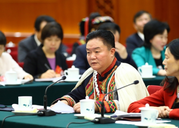 全国人大代表罗凉清在审议中发言说,截至2015年底,四川省凉山彝族自治州还有38.7万贫困人口,对凉山而言,教育是阻断贫困代际传递的治本之策。 新华社记者 丁海涛 摄