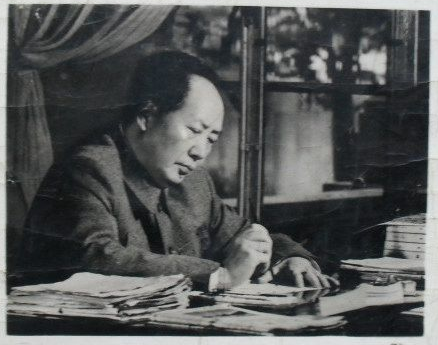 笔者收藏的这枚像章是根据毛泽东在办公室的工作照铸造的,照片为跟随毛泽东的专职摄影师吕厚民所摄。关于这张照片的背景资料以前说法不一,有人认为是在杭州西湖刘庄(西湖国宾馆)所拍,有人认为是在杭州汪庄(今西子宾馆)所摄,还有人说是在专列上拍摄的。其实这几种说法都不准确。
