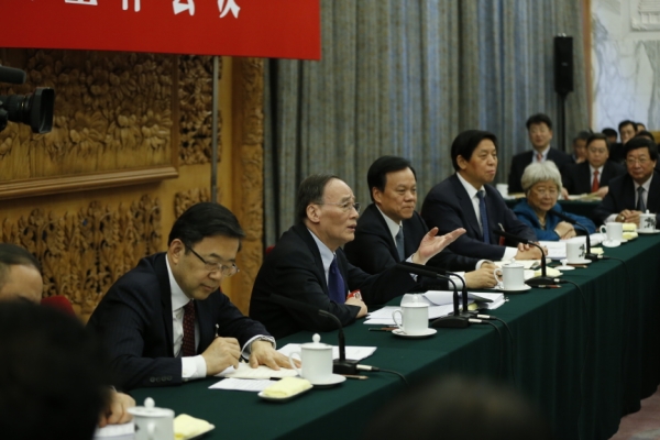 3月11日,中共中央政治局常委、中央纪委书记王岐山参加十二届全国人大四次会议贵州代表团的审议。新华社记者鞠鹏摄
