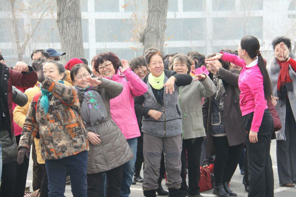 3月7日,民进新疆区委会组织女会员开展了“庆三八妇女节健步行” 活动。图为活动现场。