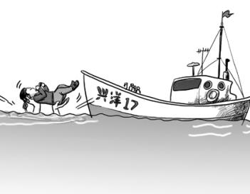 “兴洋17”号船舷很高,足有3.5米。挠钩放下来了,刘文雷和同伴想勾住小孩的衣服??墒怯捎诰嗬胩?,竟一下子勾不住孩子的衣服。
