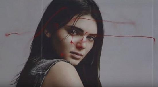2015年5月的一天,曼哈顿区的人们发现,该地区最大的一块广告牌上,CK的模特Kendall Jenner脸上被画上了几道难看的印记。
