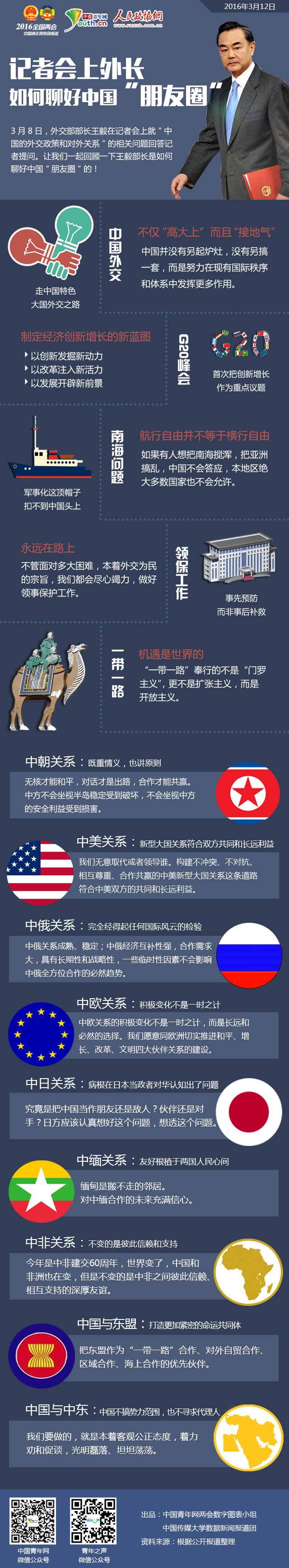 关键词:2016全国两会 外交部部长 王毅 中国朋友圈