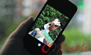 帮忙救人的李寿洲用手机拍下了现场图片。广州日报记者邱伟荣 摄