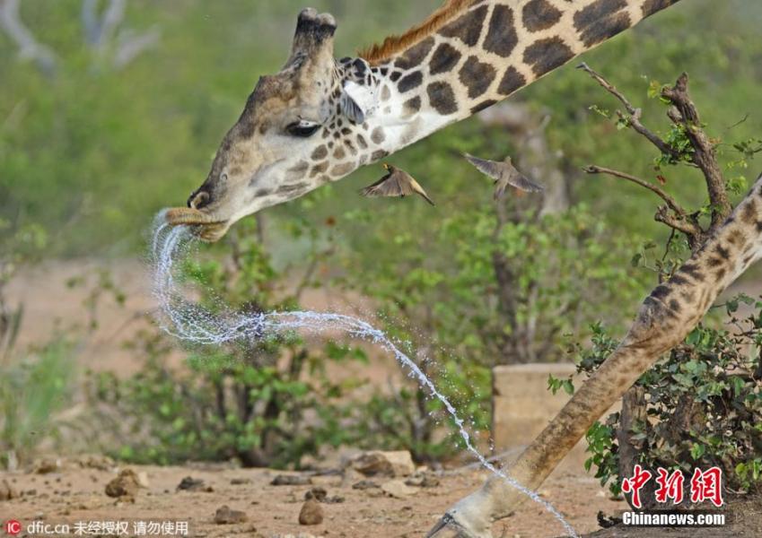 2016年3月13日消息,这只倒霉的牛椋鸟很显然在一个错误的时间出现在了错误的位置,结果被长颈鹿的一个大喷嚏弄了一身口水。当时,这头长颈鹿正在水坑边喝水,而牛椋鸟正在清理它的耳朵,结果它突然打了一个大喷嚏,把小鸟的用餐时间变成了淋浴时间。