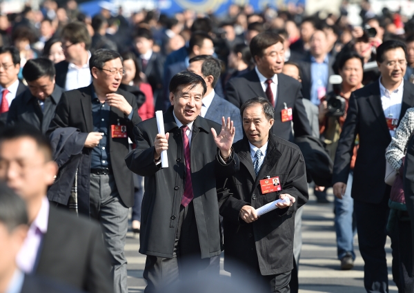 3月14日,全国政协十二届四次会议在北京人民大会堂举行闭幕会。这是全国政协委员走向人民大会堂。新华社记者李贺摄