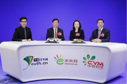 3月10日晚,全国政协委员、中共中央党史研究室副主任冯?。ㄓ乙唬?,全国政协委员、中央音乐学院教授、“中外音乐文化交流与体验”基地主任、欧美同学会副会长刘月宁(右二),全国政协委员、北京外国语大学原党委书记杨学义(左二)做客中国青年网《两会大家谈》节目。中国青年网记者 张炎良摄