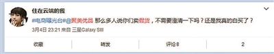 3月4日,@住在云端的我在微博上写道:“#电商曝光台#@聚美优品 那么多人说你们卖假货,不需要澄清一下吗?还是我真的白买了?”