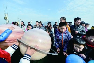 在南京紫金山天文台,小学生们在家长的带领下学习天文知识。
