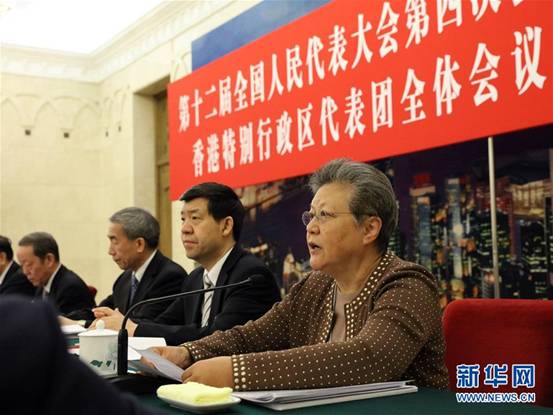 香港代表团全国人大代表范徐丽泰说,回归以来,香港背靠祖国内地获得很好发展,港人大多明白“合则两利、分则两害”。香港有今天享誉全球的地位,靠的是经济实力、是专心发展。当前的香港,也要明白这个道理,机遇已经摆在面前,要自己努力去把握。正在举行的全国两会上,来自香港、澳门和台湾的代表委员认真审议和讨论政府工作报告和“十三五”规划纲要草案,为国家的发展积极履职,建言献策。新华社记者刘卫兵摄