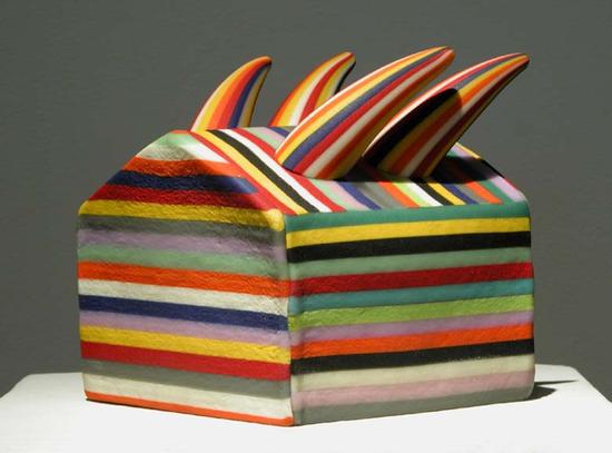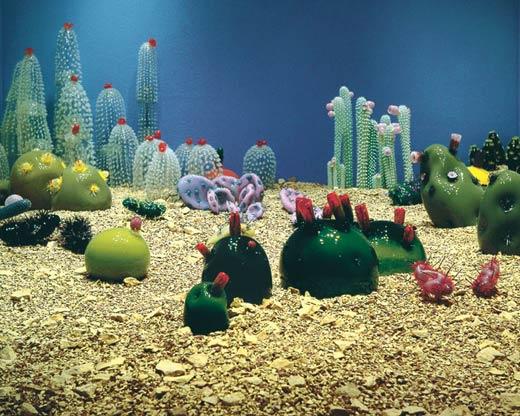 工作时回归到天真烂漫年龄状态,是特根在玻璃工艺创作中取得成功的奥秘。作为世界顶尖的玻璃博物馆,美国塔科马(Tacoma)玻璃博物馆收藏了不 少类似童趣风格的玻璃大师作品,不只是特根的兔子系列,还有福楼·品克斯(Flo Perkins)的植物系列、尼克·怀德曼(Nick Wirdnam)的“飞鱼”,以及理查德·马库斯(Richard Marquis)的“烘焙”和“土豆”。而且,根据对参观者长期的观察,博物馆的热玻璃工作室团队的专家发现,如果用立体玻璃工艺高度复原一些孩子的画 作,普通观众甚至很难分辨哪些是专业工艺师的作品,哪些只是孩子信手由缰的涂鸦之作。